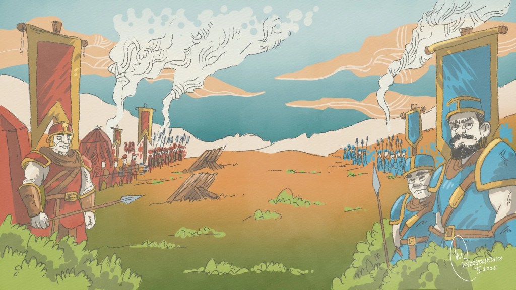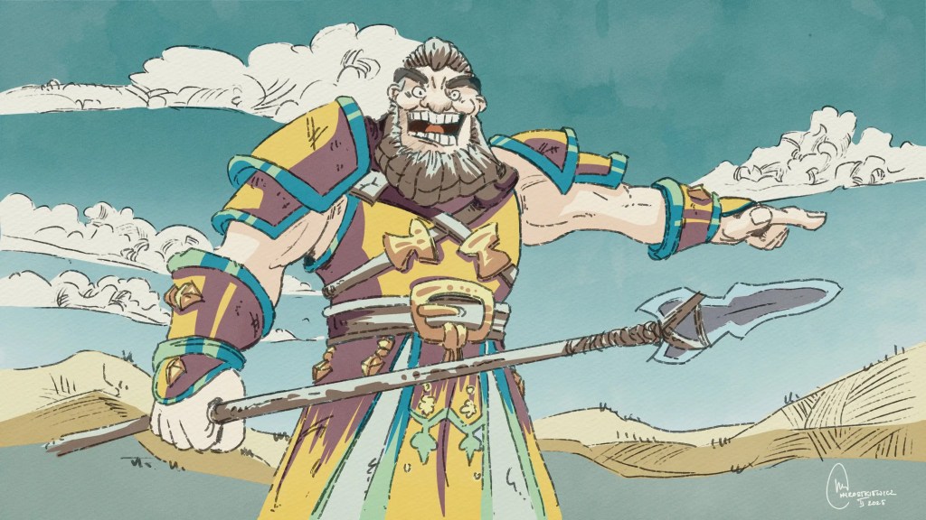 Series of eight illustrations depicting history of David and Goliath. Work done for Settle Stories for a Stories for Schools project.